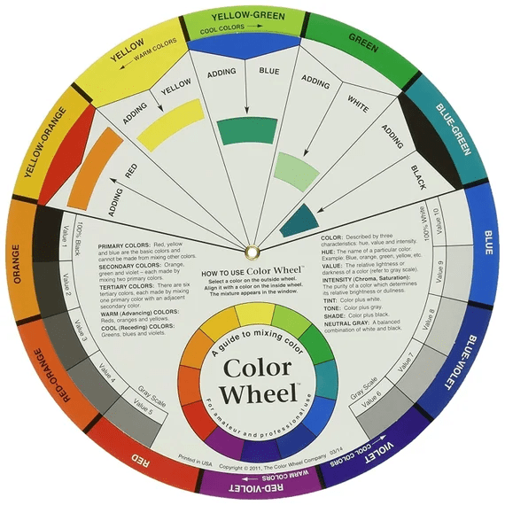 Identifiez les couleurs principales de votre pièce qui a besoin de coussins. J’aime utiliser une roue des couleurs (ci-dessous), vendue dans les magasins d’art tel que Omer de Serres. Quelles couleurs existent déjà? Prenez-les en note!